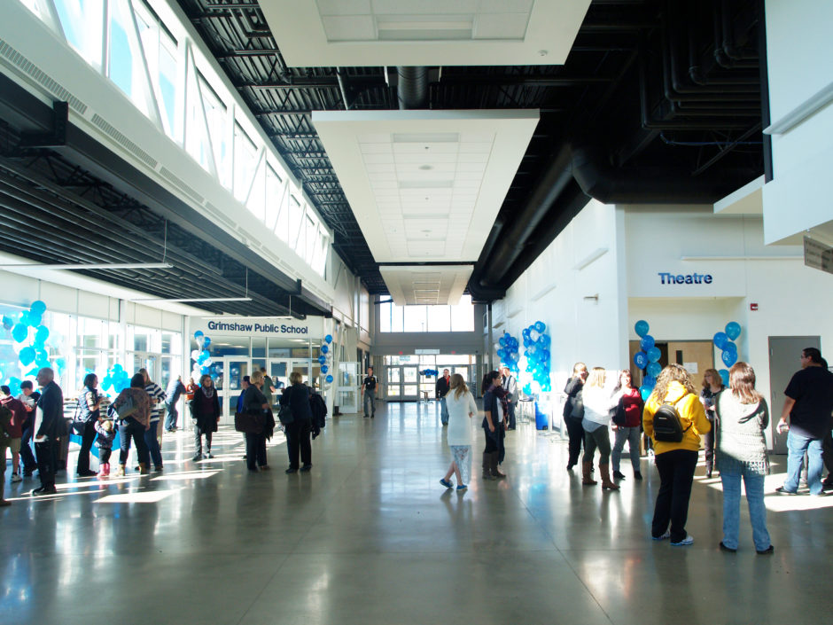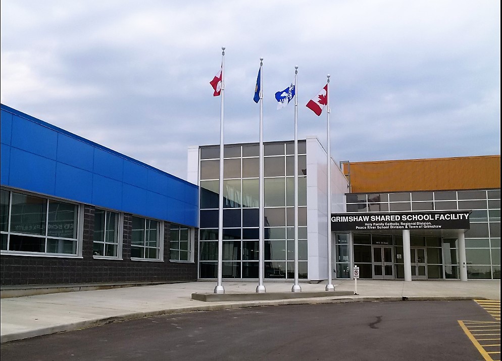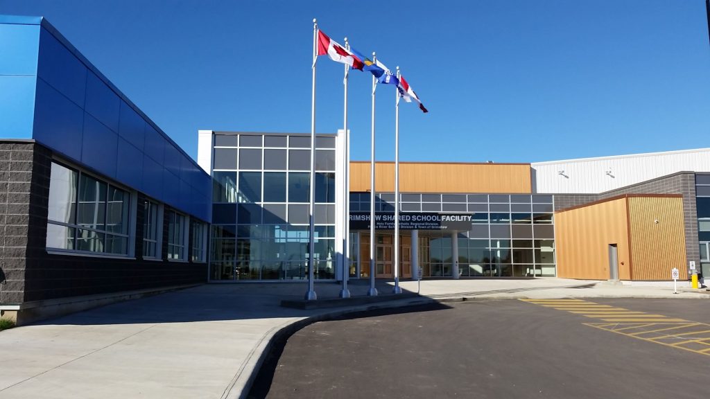 Description: Owned by the Holy Family Catholic Regional Division and the Peace River School Division this new 6,715 m² Grimshaw Shared School Facility is also attached to the Mile Zero Regional Multiplex, brings two new schools (K-9 school for Holy Family Catholic Regional Division and a K-12 school for Peace River School Division), a shared atrium, public library, community theatre, and two Career Technology Studies spaces to the community. The project was constructed under a design-build delivery method which Marshall-Lee lead.
