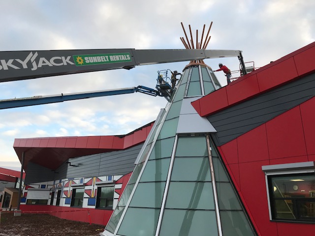 The new facility includes an industrial art shop for career and technology programs for junior high students and a skills and education centre for members of the community. It also has a state-of-the-art photovoltaic system on the roof. The project was completed October, 2020.
